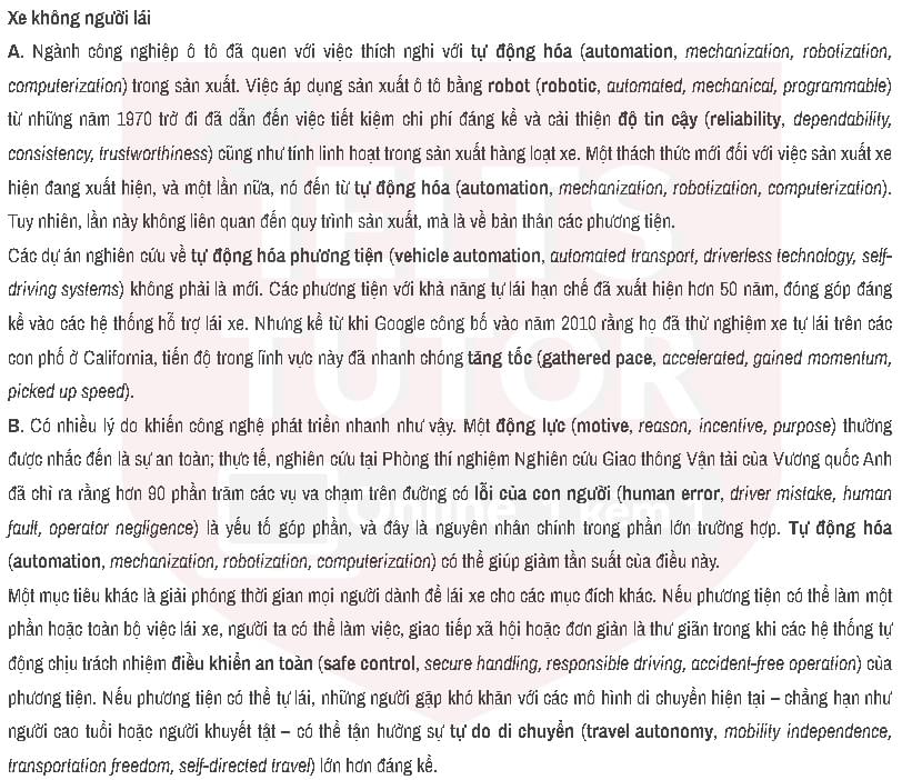 V. Giải thích từ vựng Driverless cars - Đề thi thật IELTS READING (IELTS Reading Recent Actual Test)
